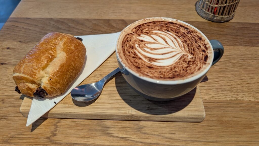 I found another small example of the interweaving of history and modernity in this cafe. (Side note: this was like the best coffee I’ve ever had). This was a very modern cafe –san serif logo, compostable to-go cups, minimalist decor — and yet they displayed a St. Brigid cross above their counter.