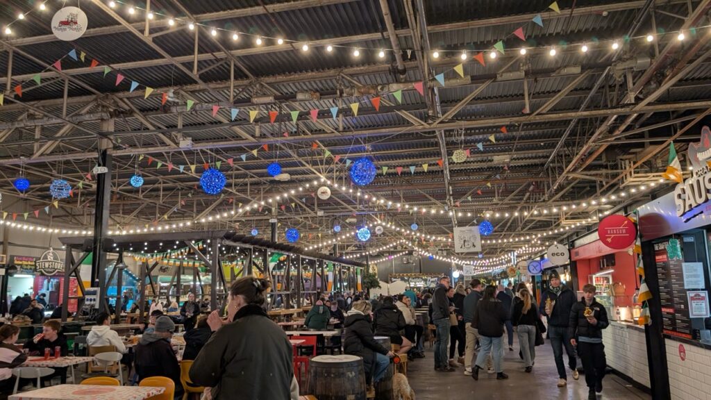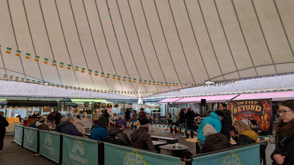Then, after devouring fudge from the Milk Market while waiting half an hour for a delayed bus, we went back into Cork City. On Cormack, our IFSA guide’s, recommendation, we went to the Marina Market. It was a super cute set up with lights and tables in the middle and food trucks lining the perimeter.