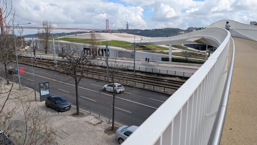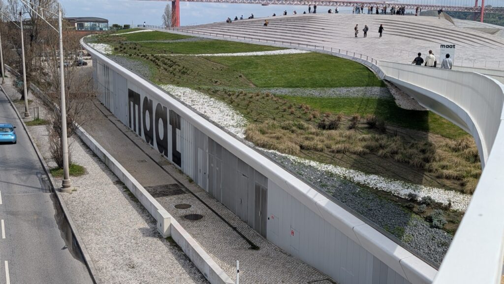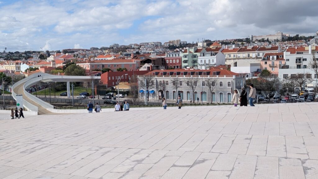 That afternoon, I went to the Museum of Art, Architecture and Technology (MAAT). It has one of coolest approaches to a building I’ve ever seen. You walk across a bridge that brings you onto the roof of the museum!