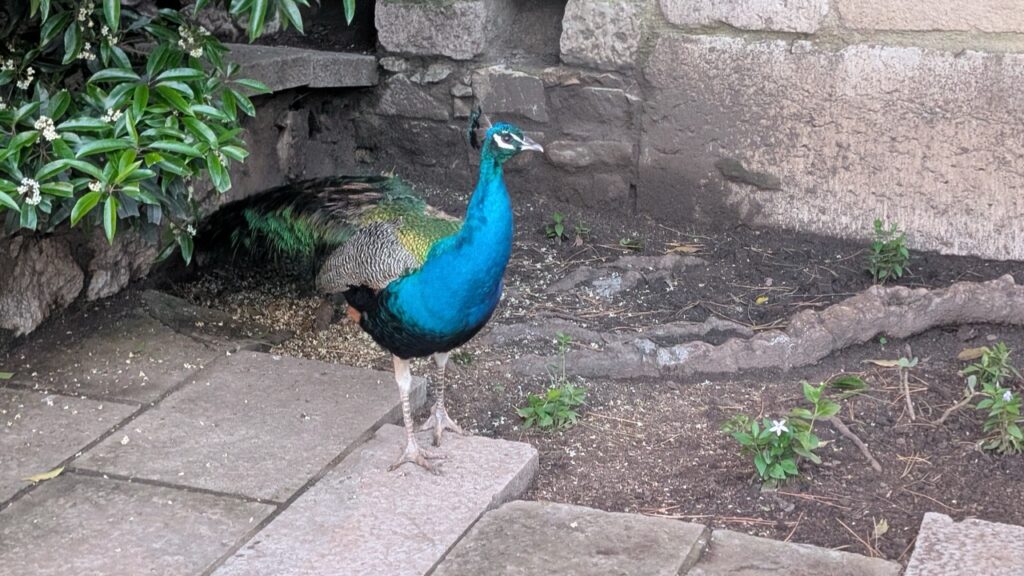 There are also just peacocks roaming around everywhere. I didn’t realize peacocks could fly, but they can, I saw one do it in front of me! At one point, I looked up and there were probably ten peacocks sitting in the tree above me!