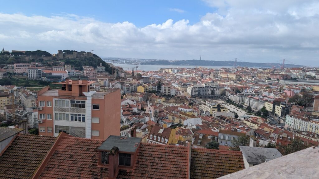 I got into Lisbon late on Friday night, so I started my touring with a Tuk Tuk tour on Saturday morning. My tour guide was quite a character – he’d already had three espressos and was very enthusiastic! He was still informative and had some good recommendations though! We went first to the highest point in the city, on the hill of Alfama — Lisbon is made up of 7 hills. It had a beautiful vista over the entire city!